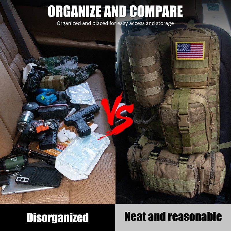 IronSeals Car Seat Back Organizer with 4 Pouches, Tactical Molle Panel Sag Pr...