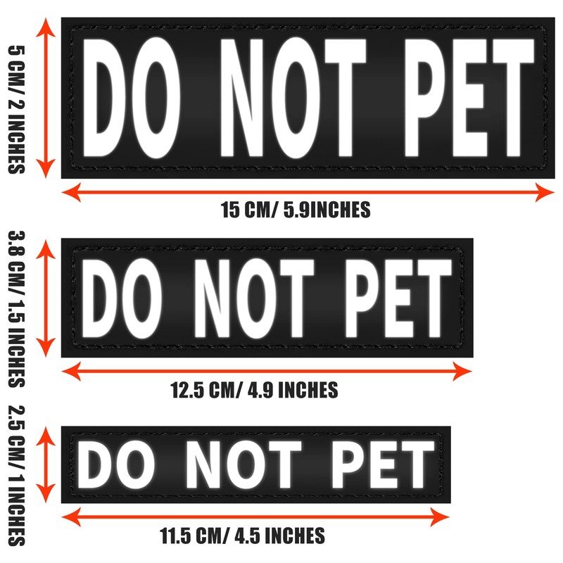 - Set of 2 Patches: lets you clearly identify your dog on both sides of his harness or vest. (SERVICE DOG/ASK TO PET/DO NOT PET/FREE HUGES/EMOTIONAL SUPPORT)