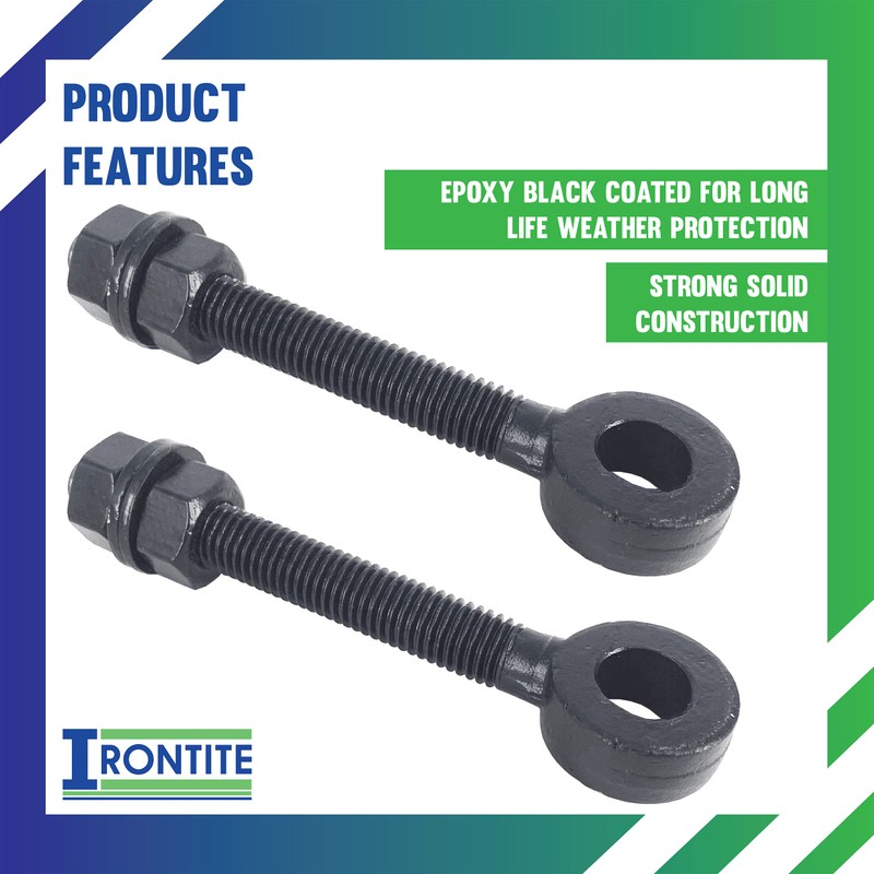 IRONTITE® 2 Pack Black Gate Hinges Eye Bolt, 12mm x 100mm Long. Adjustable Gate Hinges Eye Bolts, Ideal As Garden Gate Hinges for Wrought Iron Gates.