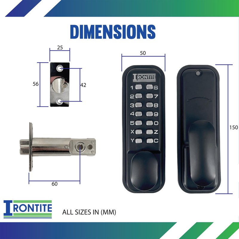 - USES: These IRONTITE combination locks are a keyless door lock suitable for a wide range of doors from 35-65mm wide. These push button keypad locks for door are simple and effective.