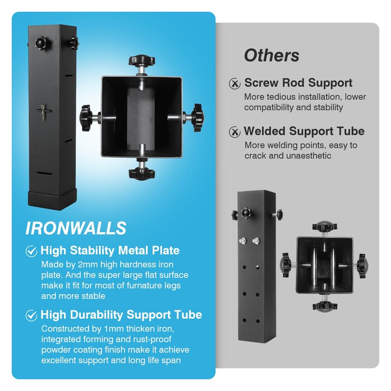 - 【Enhanced Stability with Upgraded Flat Support Plate】Our L-shaped support plates, made from 2mm thick iron, provide superior stability. The large flat surface accommodates various leg shapes, including square, round, and irregular designs, ensuring a secure fit.