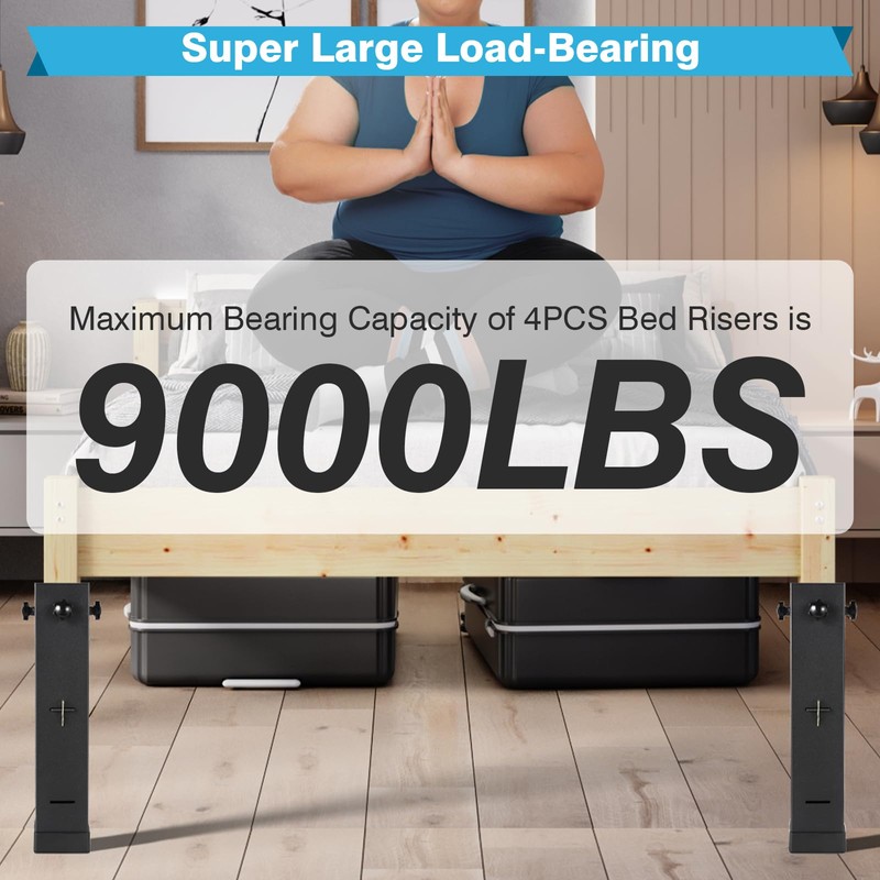 - 【Impressive Load Capacity of Up to 9000 lbs】 Constructed from 1mm thickened iron, our metal bed frame risers are exceptionally strong, rust-proof, and resistant to deformation. With a maximum load capacity of 9000 lbs, they are suitable for various furniture types, including dorm beds, wooden or metal platform beds, desks, work tables, and storage shelves.