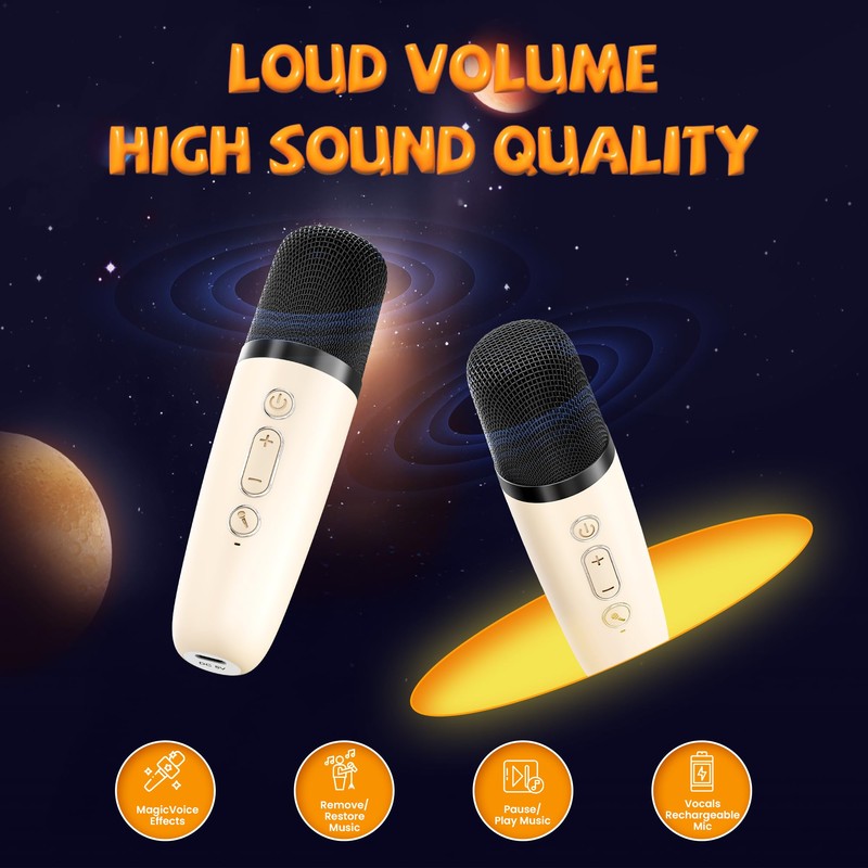 - Perfect Gift: Mini Karaoke Machine Come with 4 kinds of magic voices: monster voice ,Baby voice,Man's Voice and Woman's Voice. An interesting gift for kids and your friends who love to sing and dance. Stylish design and beautiful package box make it perfect birthday Christmas gift for family and friends.