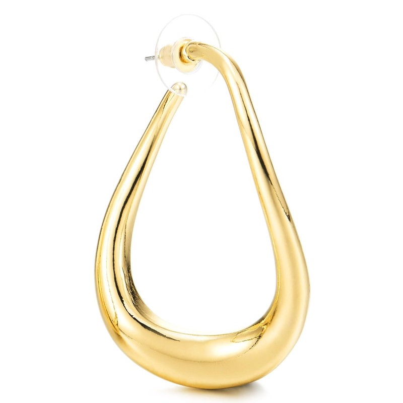 - Irregular teardrop hope earrings gold colour, statement drop earrings, elegant and liquid design
