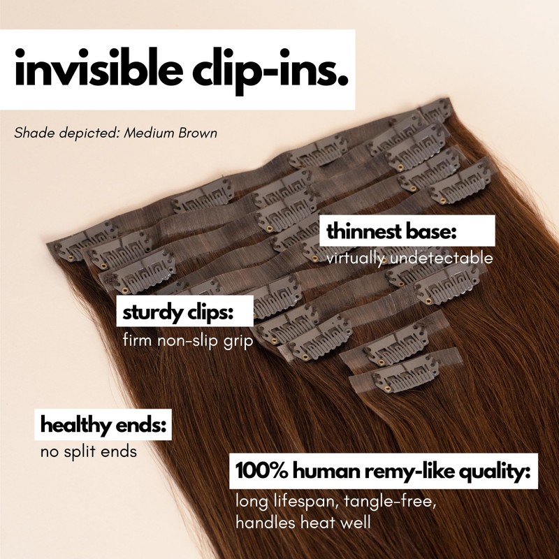 - SECURE HOLD WITH STURDY CLIPS – NO SLIPPING OR DAMAGE – The clips of our clip in human hair extensions are tightly sewn onto the silicone base to help keep the extensions in place throughout the day. This design helps reduce slipping and minimizes the risk of tugging or discomfort unlike bulky alternatives.