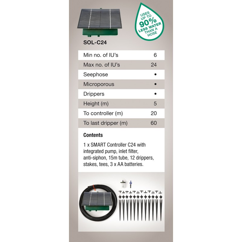 - Automatic watering for up to 10 large hanging baskets or 24 x 20L pots