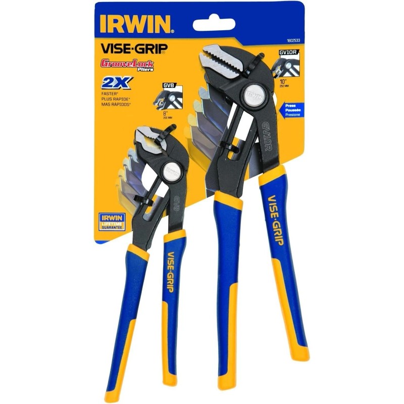 Irwin Tools 1802533 Two Piece GrooveLock 8-Inch V-Jaw and 10-Inch Straight Jaw Pliers Set