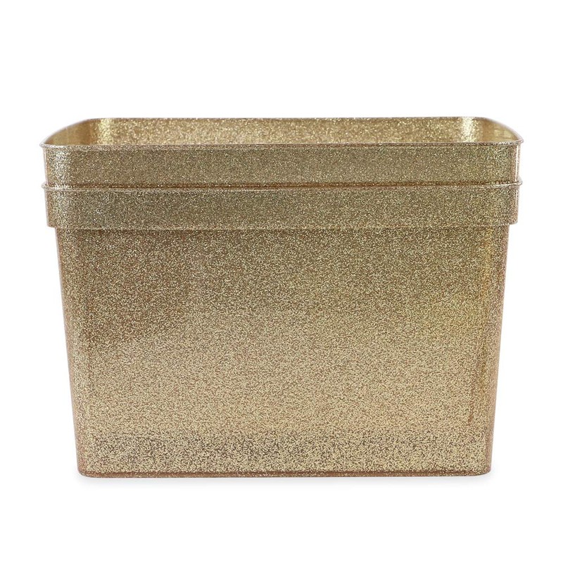Isaac Jacobs Large Glitter Storage Bin (14” x 11.5” x 8.75”) Set w/Cut-Out Handles, Plastic Organizer, Multi-Functional, Home Storage Solution, Kids Playroom, Bedroom, Closet (2, Gold)