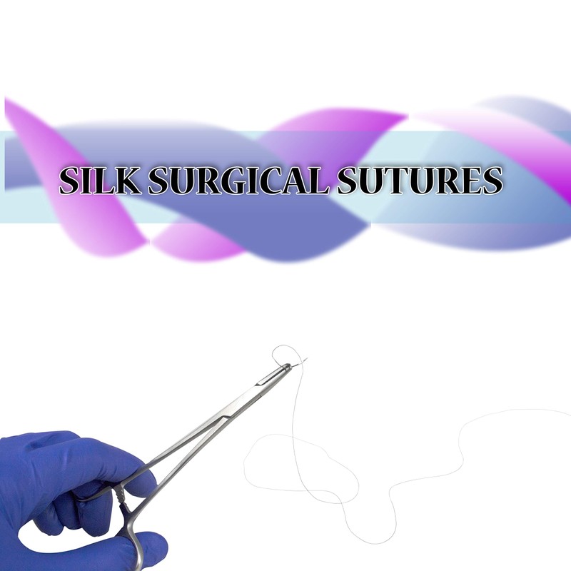 - 75 cm silk suture, braided filament, superb strength, will not fatigue with normal flexing
