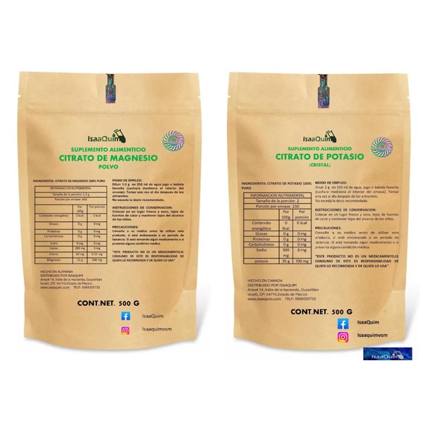 IsaaQuim Duo 500 gr Citrato de Magnesio + Citrato de Potasio