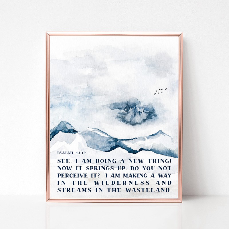 Isaiah 43:19, See, I am doing a new thing! I am making a way in the wilderness and streams in the wasteland, Modern Bible Verse Decor, Christian Poster 8" x 10", Unframed
