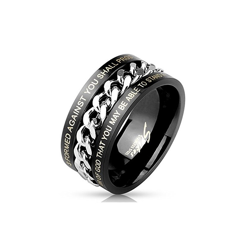 Isaiah 54:17 & Ephesians 6:11 Black Stainless Steel Spinner Ring Chain with Bible Verse (11)