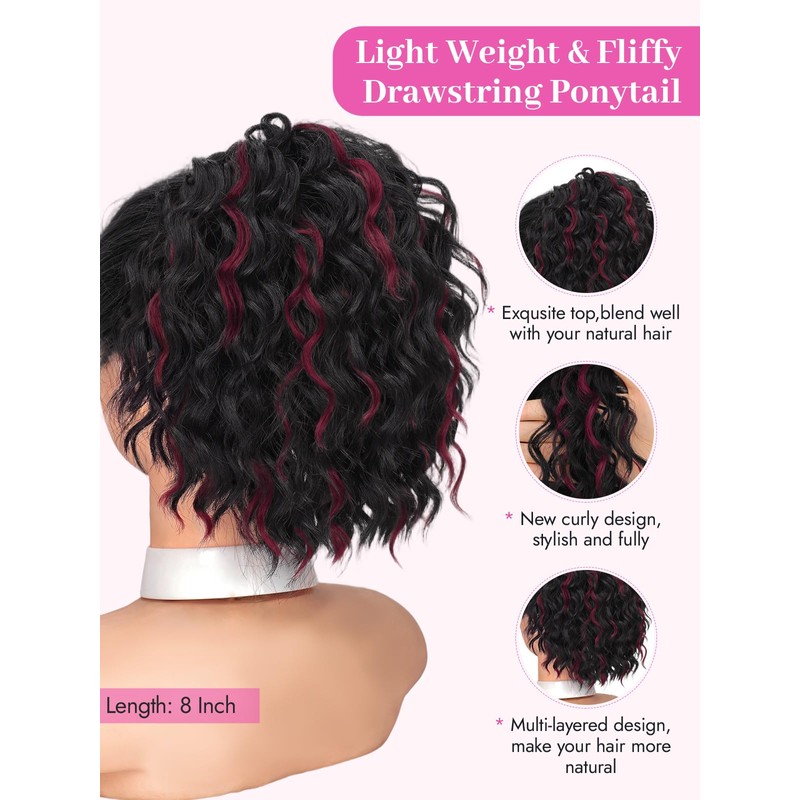 Isaic Curly Ponytail Extension,Drawstring Ponytail for Black Women 8 Inch,Synthetic Pony Tails Hair Extensions for Daily Use(H1B/BUG#)