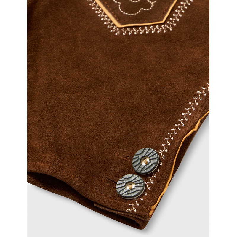 Isar-Trachten Boy’s Traditional Leather Trousers - Short, Brown, Embroidered, Camel (Brown) - 80