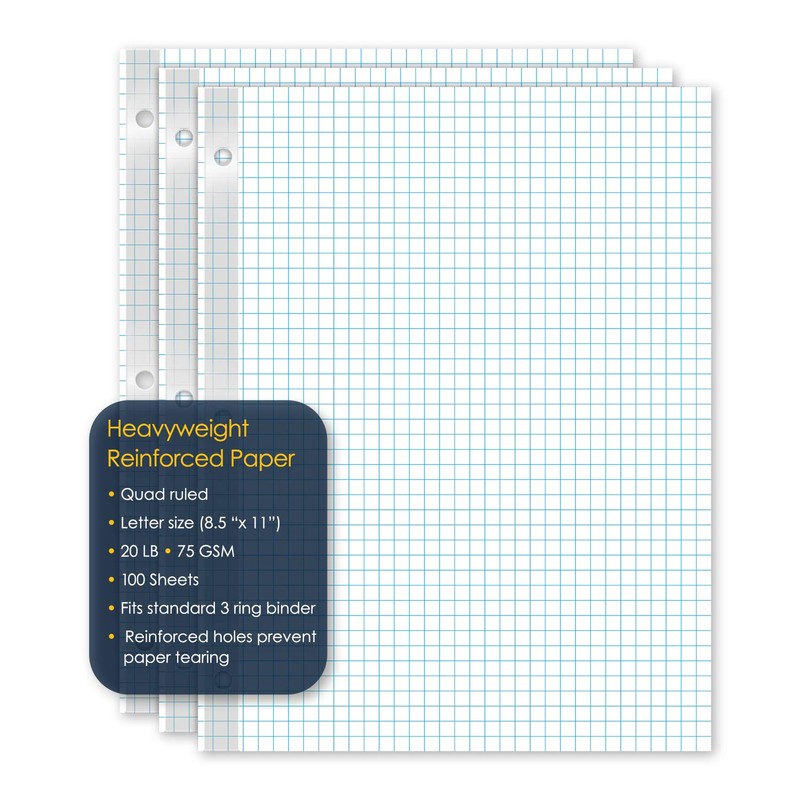 iScholar is a leading manufacturer of school, home and office paper supplies. iScholar's Quad Ruled Filler Paper is perfect for graphing, lab work, note taking and more. It is three-hole reinforced filler paper specially designed to prevent tearing, punched allowing each sheet to fit nicely in a standard ring binder and folder. It features 4 ruled squares per inch and each pack contains 100 sheets of 11 x 8.5 inch quad ruled paper with a 4x4 grid pattern. iScholar products offer everything you need to stay organized and make the grade.