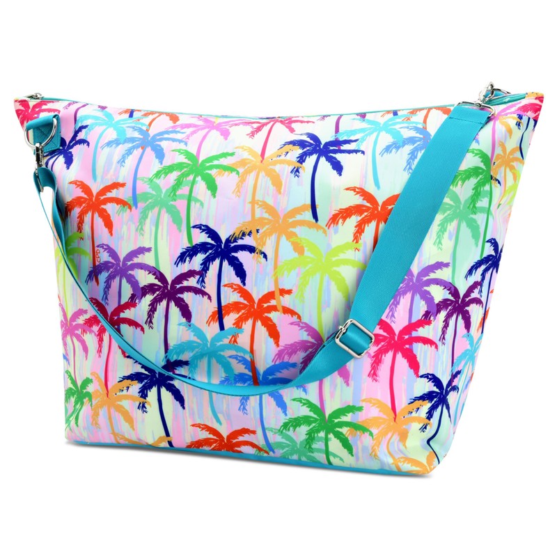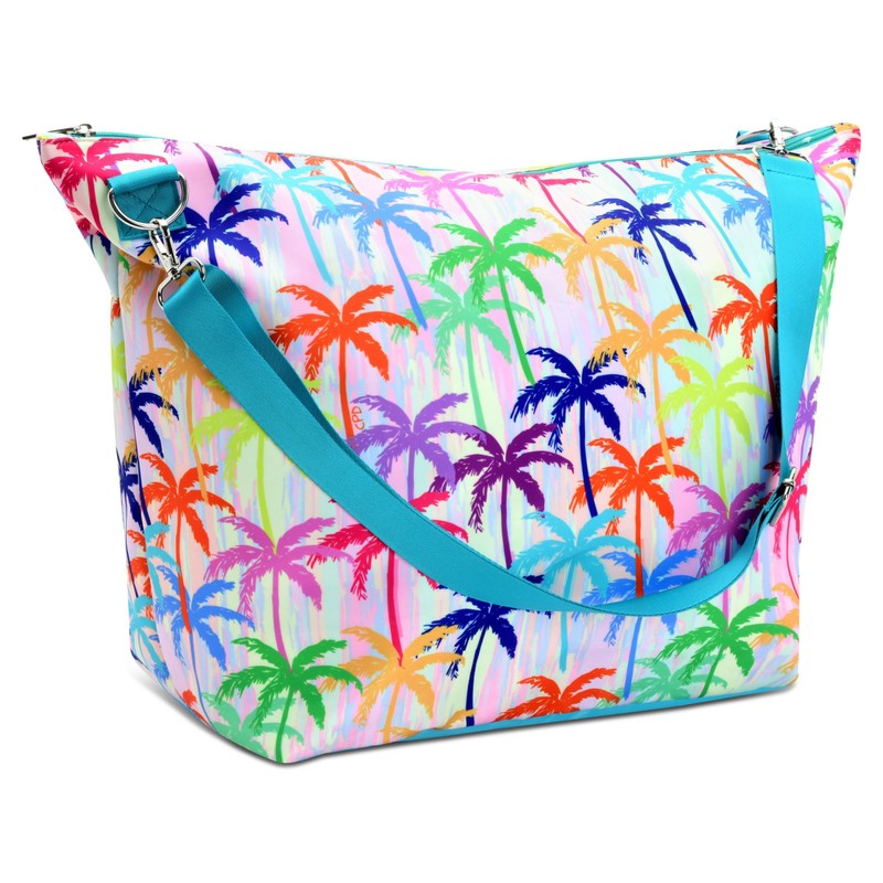 iscream + Corey Paige Designs 23.5" x 16" Weekender Travel Tote Bag with Vibrant Nylon Exterior and Adjustable Strap - Palm Trees