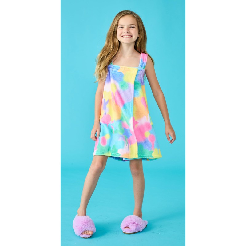 iscream + Corey Paige Designs Big Girls' Silky Soft Plush Spa Wrap - Graffiti Stars, X-Small/Small (4-8)