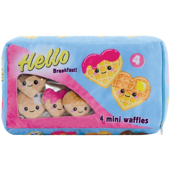 - This full-color pillow is comprised of a fleece zipper closure bag with a clear window in the front to show the four smiling toaster waffle mini pillows inside