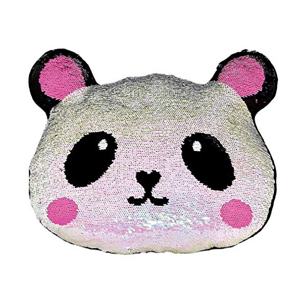 iscream Pretty Panda 13" x 11" Reversible Sequin Soft Fleece Back Accent Pillow