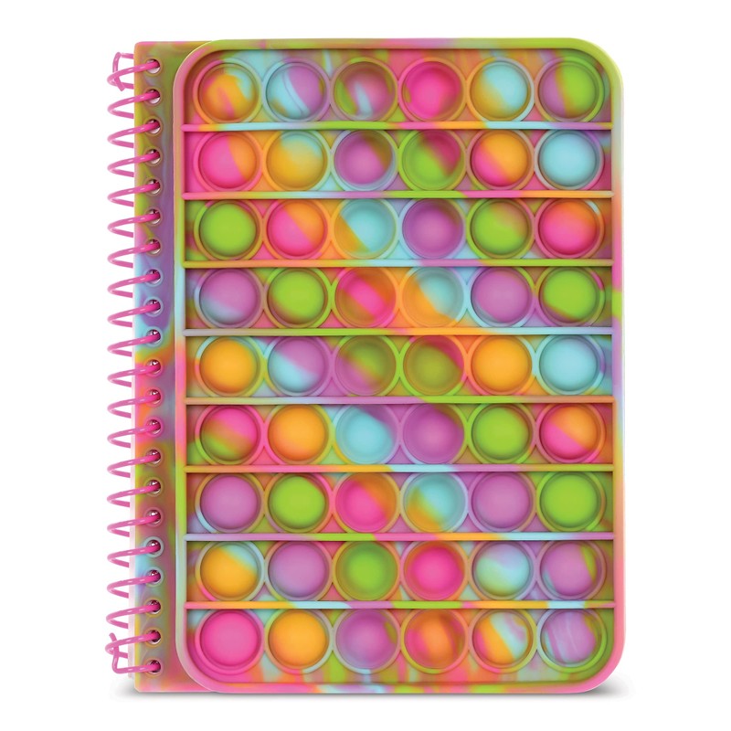 - This fun spiral journal featuring an extra fun, stress relieving silicone popper cover is just the spot to set the mood for writing happy thoughts