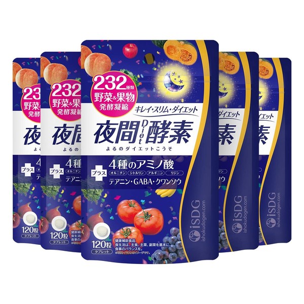 ISDG 夜間 酵素 サプリ 232種類の天然野菜と果物 複合植物醗酵粉末 GABA L-シトルリン 配合 ダイエット サプリメント 乳酸菌 食物繊維 植物酵素 国内製造 120粒 30日分 5個セット