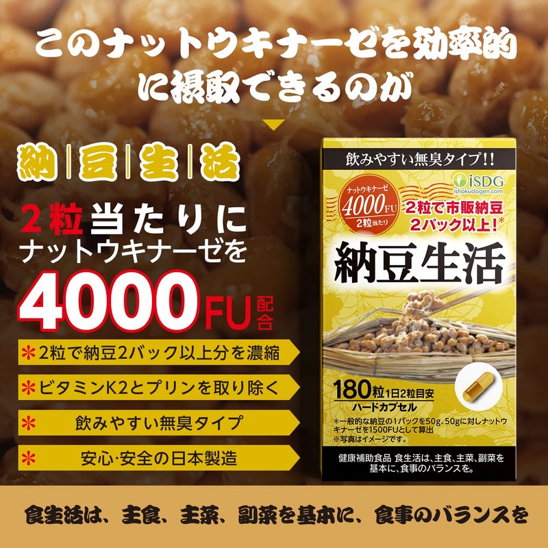 ISDG ナットウキナーゼ 4000FU 納豆生活 納豆キナーゼ サプリ 納豆菌培養エキス 高活性 栄養補助食品 日本生産 180粒 90日分(2個セット)