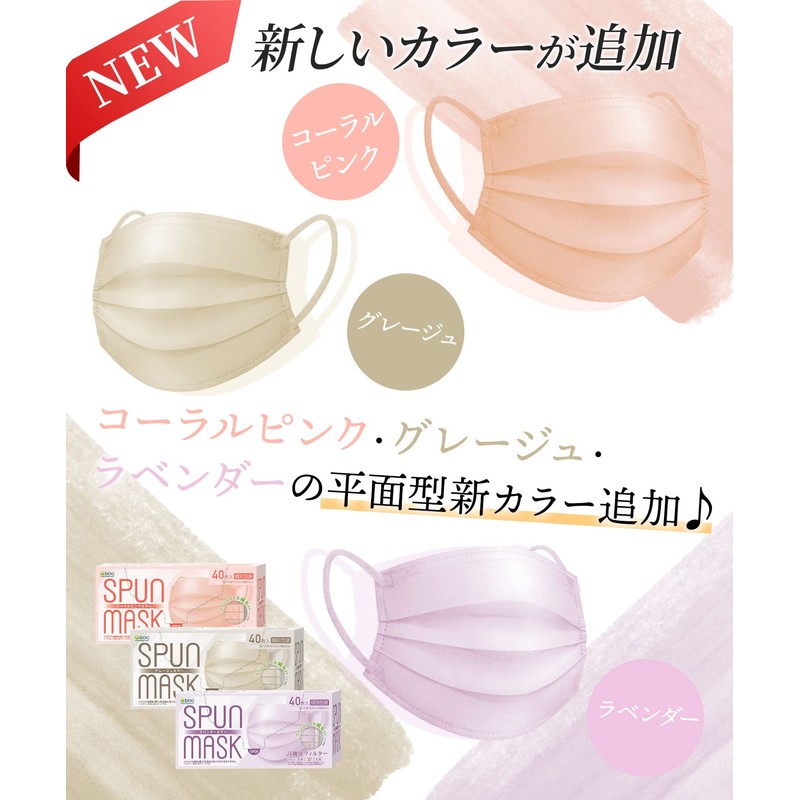 • [Characteristics (Materials)] Spun lace mask is made primarily with water pressure without using binder (bond), and has a luster and feel that ordinary non-woven fabric can. The colors are different at a glance