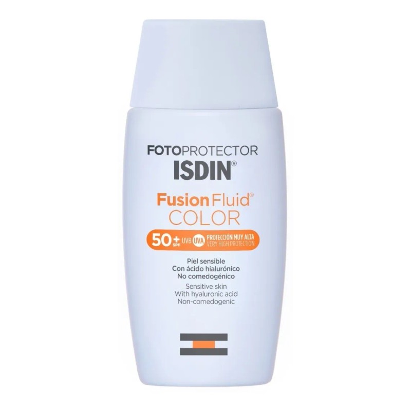 El Isdin Foto Fusion Fluid Color SPF 50+ (50 ml) es un fotoprotector facial con color que ofrece una combinación ideal de protección solar muy alta y perfección cosmética en un solo producto. Formulado con tecnología Fusion Fluid, su textura ultraligera se absorbe al instante sin dejar brillos, aportando un efecto segunda piel.