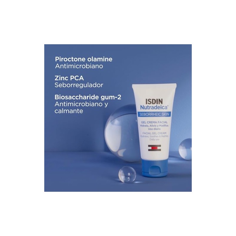 🌟 ⭐ ISDIN Nutradeica - Gel-crema facial indicado para el tratamiento del exceso de sebo, descamación, picor y eritema de la piel seborreica facial, 50 ml ⭐ 🌟