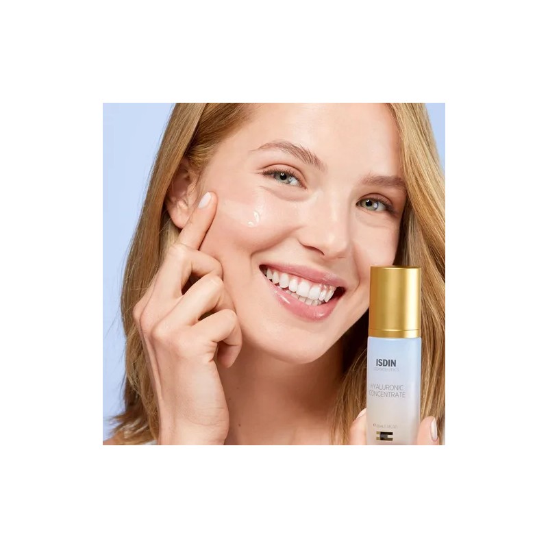 🧴 Modo de uso: Aplica Isdinceutics Hyaluronic Concentrate 30 ml mañana y noche sobre la piel limpia y seca del rostro, cuello y escote. Masajea suavemente con movimientos circulares hasta su total absorción. Para potenciar sus efectos, se recomienda utilizarlo como primer paso de tu rutina de cuidado facial, seguido de tu crema hidratante habitual.