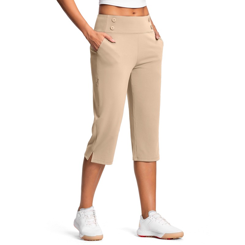 - 【High Elastic Fabric, Soft, and Breathable】Crafted from a high-elastic polyester-spandex blend, these capri pants for women are soft, skin-friendly, and lightweight, offering excellent breathability and comfort. Featuring quick-dry properties, they keep you comfortable all day long, whether you're on the golf course, at work, or out for casual wear. As womens capris for summer, they suit both professional and leisure activities.