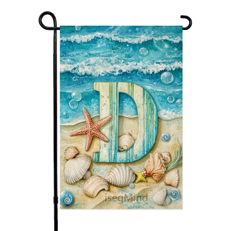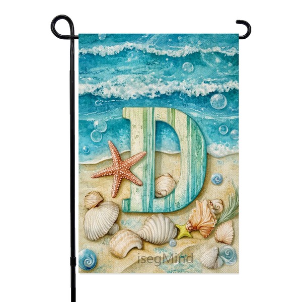 isegMind Summer Monogram Letter D Garden Flag Beach Seashells 12x18 Vertical Double Sided Fall Decor Outside Decorations Small Linen Family Last Name Initial Yard Flag (691)