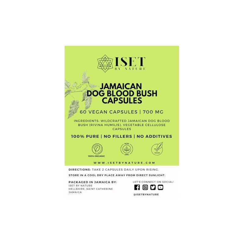 Iset By Nature Jamaican Dog Blood Bush Capsules 1400mg - Fertility Supplements for Women to Support Hormone Balance & Conception, PCOS Relief with Organic Jamaican Dog Blood Herb - 60 Capsules, Vegan