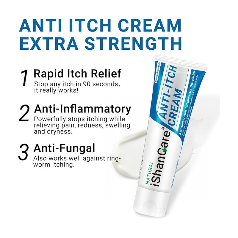 - 【Easy to Absorb & Moisturizing】iShanCare maximum strength anti-itch cream can be absorbed into the skin within 15 seconds, it will leave no residue after use. When applied to the skin, our itch relief cream will penetrate quickly, locks in moisture, thus maintaining the moisture balance of your skin.