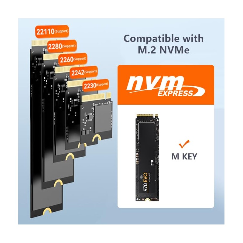 • Dock for SSD M2 NVMe, support all formats: 2230, 2242, 2260, 2280 and 22110 in M or B+M keys.