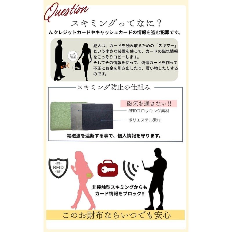 - [Skimming Prevention Material Protects Your Personal Information] The RFID blocking material and polyester material protects your valuable information from fraudulent fraud