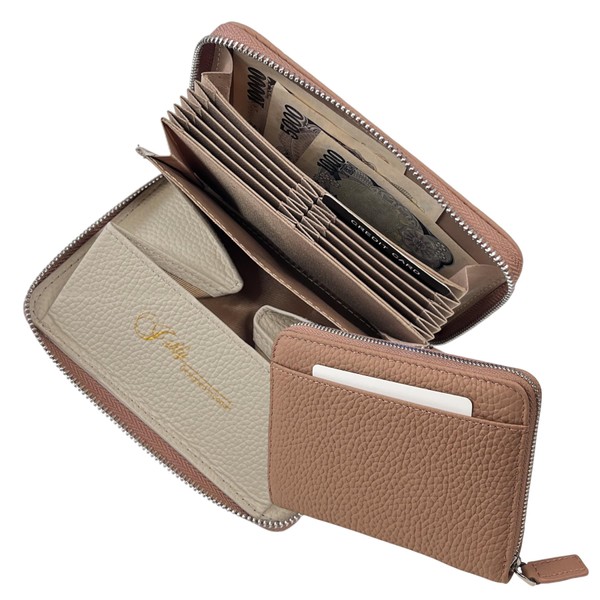 ishly Mini Wallet, Card Case, Genuine Leather, Large Capacity, Prevents Bills from Breaking, Box-Shaped Coin Purse, dusty pink
