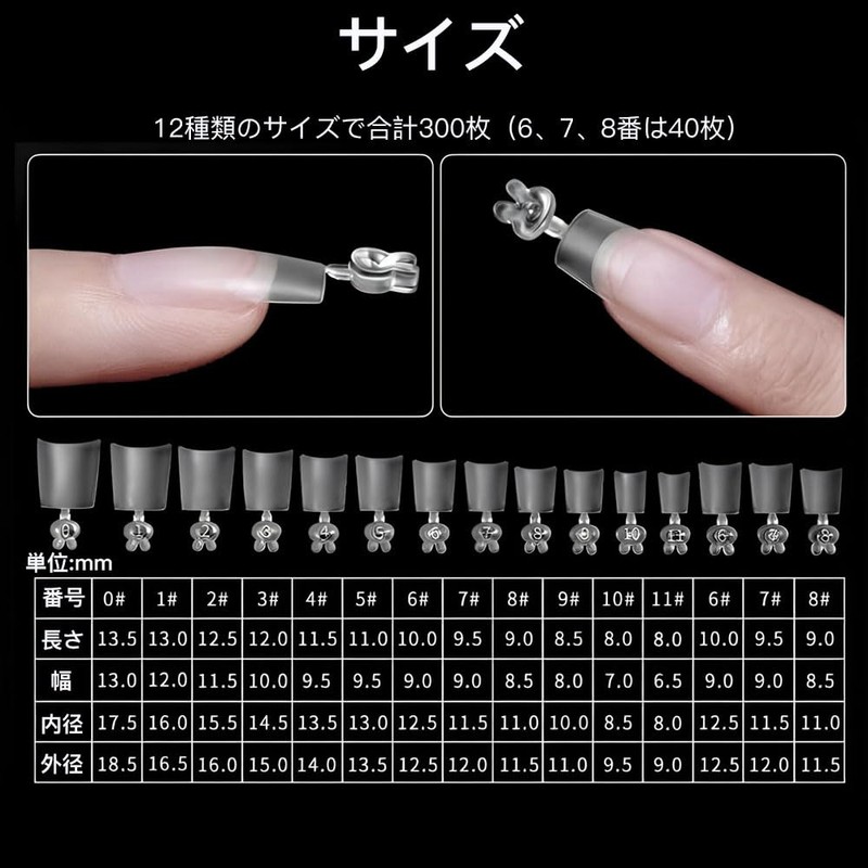 ISHR Trapezoid Cofi Short Nail Tip, Set of 300, 12 Sizes, Half Cover, Clear Tip, French Nails, Flesh Nails, Ultra Thin, Semi-Stick, Non-marking, Natural Fit, Nail Supplies, Practice (B, 300 Sheets)