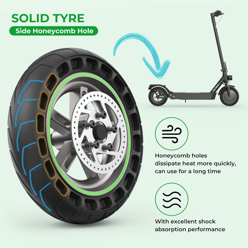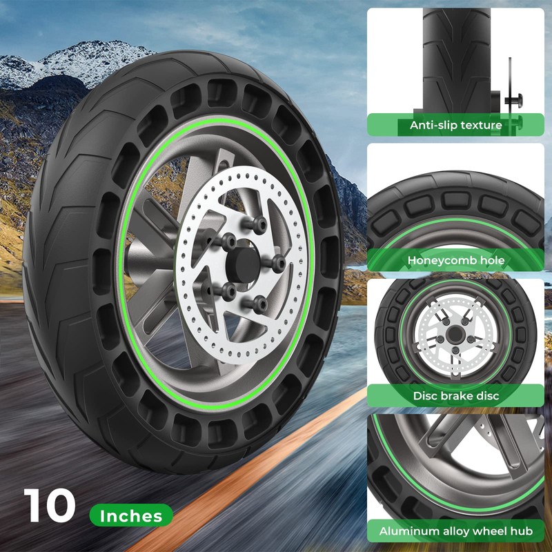 - 【Airless Honeycomb Tire】Airless Puncture-proof tires special designed to who commutes on a regular, unnecessary to fix flat tires every time you ride your scooter. No need to inflate, no need for patches, no need inner rubber tire, no need to worry about puncture broken.