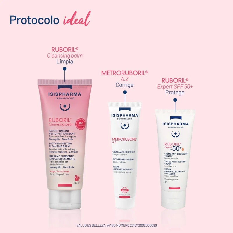 Aplica una pequeña cantidad de Isispharma Ruboril Bálsamo Limpiador sobre la piel húmeda y masajea suavemente con movimientos circulares. Enjuaga con agua tibia y seca con palmaditas. Úsalo mañana y noche como parte de tu rutina de cuidado facial.