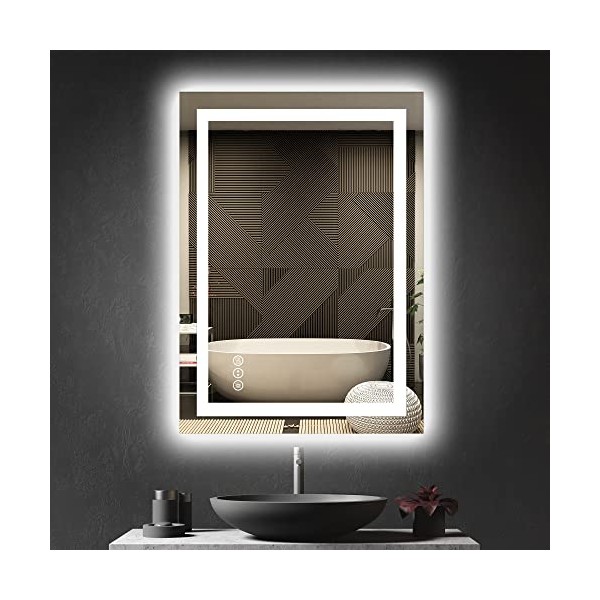 • [High Quality]--Our mirrors use high-quality tempered glass, which is not easy to break. Even if it is smashed by a hard object, it will not produce fragments. The waterproof rating of the bottom box is IP65, making it safe to use in the bathroom as well. Use high-quality light strips to reduce current noise.
