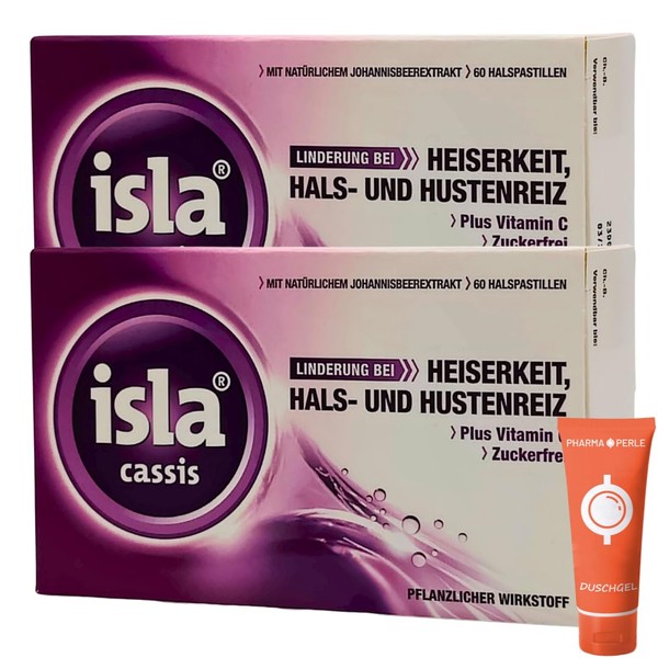 Isla Cassis 2 x 60 Throat Lozenges, Relief from Hoarseness, Throat and Cough Stimulation, Lozenges, Plus Vitamin C, Currant Extract, Plant-Based, Economy Set Plus Pharma Perle Give-Away