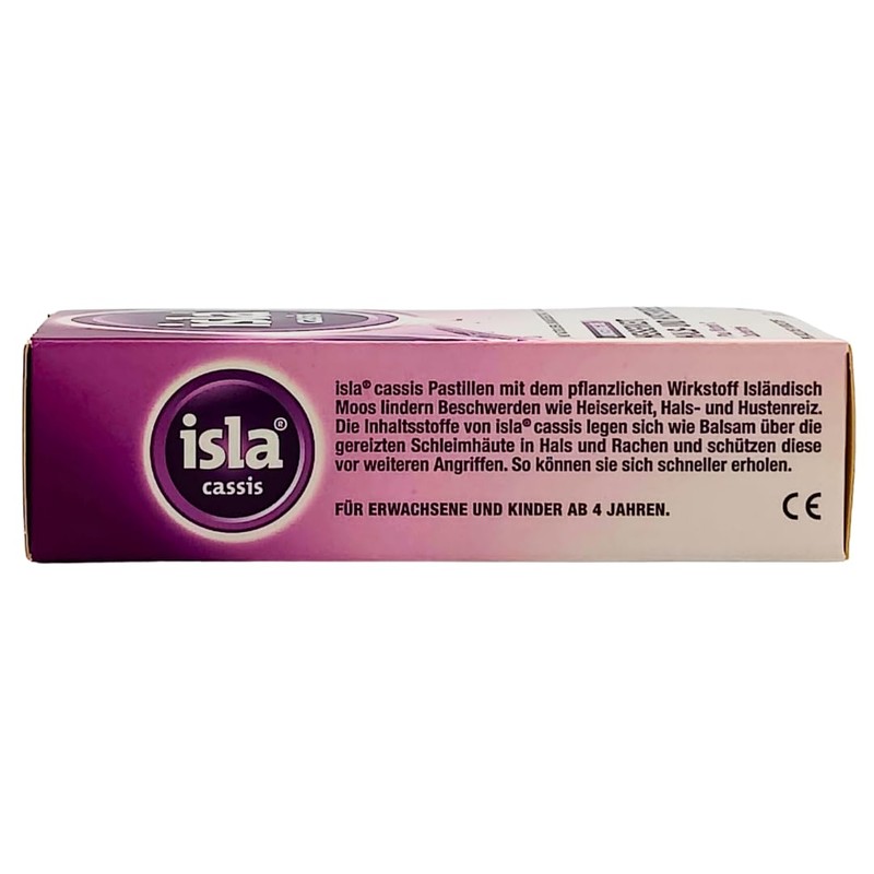 - Support mucous membrane moistening: Isla Cassis neck lozenges contribute to moisturizing the mucous membranes and promote a pleasant mouth feeling.