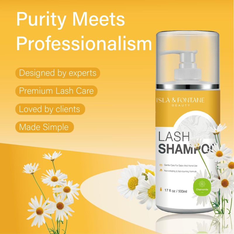 Isla & Fontane Lash Shampoo Bulk – Multi-Scent Series – 17 fl oz / 500ml | Gentle Eyelash Cleanser for Lash Extensions | Non-Irritating | Professional Lash Bath Foam For Salon And Home Use (Chamomile)