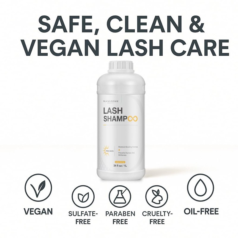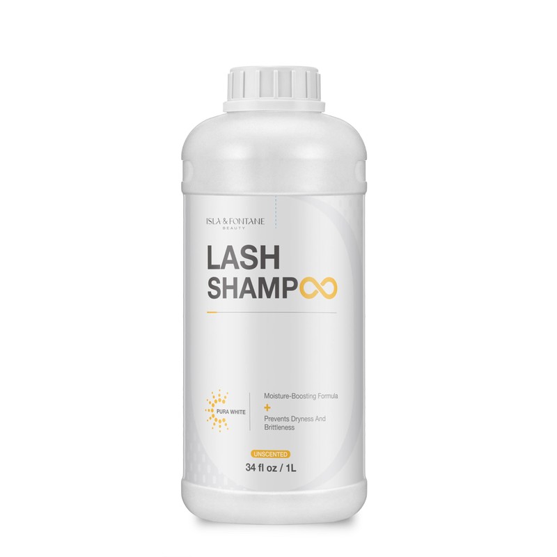 ISLA & FONTANE Lash Shampoo Bulk – Pura White 34 fl oz / 1L | Gentle Eyelash Shampoo for Extensions | Lash Foam Cleanser | Oil-Free Lash Bath for Home & Salon Use