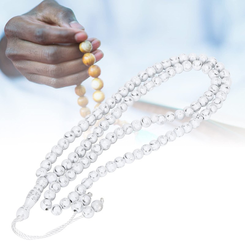 Islamic Prayer Beads, Muslim Rosary Beads 99 Grains Resin Gilding Religious Article(White)