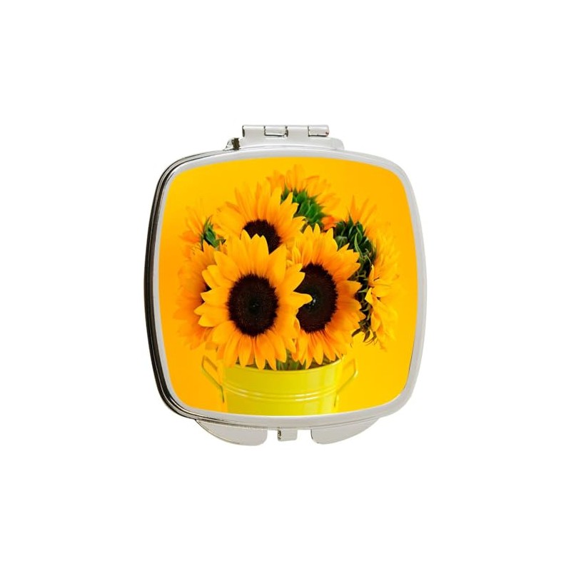 Island Gifting - Beautiful Sunflowers in Yellow Pail - Square Compact Mirror - Travel Mirror