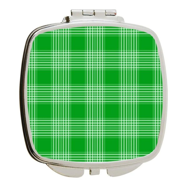 Island Gifting - Bright Green Plaid Check Design - Square Compact Mirror - Travel Mirror