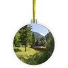 Island Gifting - Image of Carpathian Mountain Holiday Chalet Fairytale Romania - Christmas Ornament top Flat - Rearview Car Mirror Hanging Accessory