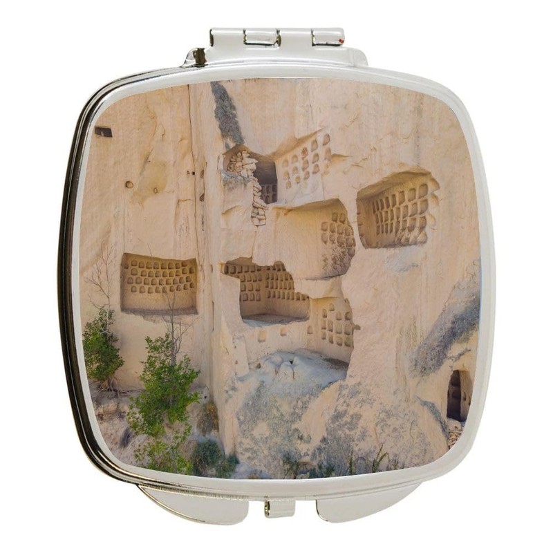 Island Gifting - Image of Mountains of Cappadocia Cave Houses in Turkey - Square Compact Mirror - Travel Mirror
